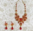 Elevate your jewelry collection with this stunning Betsey Johnson Gold Red Crystal Floral Necklace Earring Set. The set includes a beautiful round-shaped necklace and matching earrings, adorned with vibrant red crystals and rhinestones. The yellow gold-plated metal adds an extra touch of elegance to the set, making it perfect for any occasion. The necklace and earrings are of excellent cut, showcasing a brilliant and sparkling finish. The set brand Betsey Johnson. It is a perfect gift for your loved ones or a lovely treat for yourself.