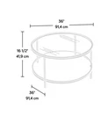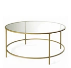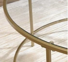 The Better Homes & Gardens Nola Coffee Table features a chic gold-tone metal frame with a modern, minimalist design. Its sleek surface adds a touch of elegance, making it a stylish addition to any contemporary living space. The table is ideal for pairing with various décor styles. See picture for size.