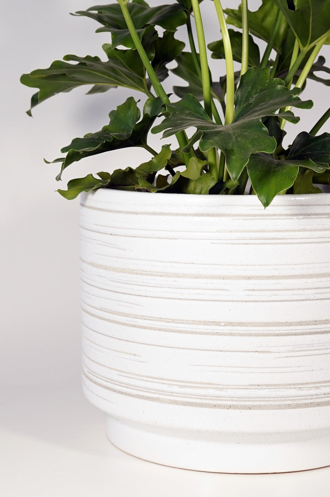 Features Weather-Resistant, Drainage Holes Color White Size 6" Shape Round Assembled Product Weight 2.2 lb Material Ceramic Recommended Use Patio Assembled Product Dimensions (L x W x H) 6.00 x 6.00 x 5.40 Inches The Better Homes & Gardens 6" White Teramo Ceramic Pot is bathed in a mod combination of weather wash and bubbles. Multiple stripes of glazing have an artistic, one-of-a-kind feel. Perfect for indoor or outdoor use, the pot includes a convenient plug so you can nurture plants without water seeping out and ruining surfaces. Better Homes & Gardens 6" Teramo Round Ceramic Planter, White Round planter with a hole at the bottom with a removable plug Ceramic is highlighted with a stunning glazed white finish Weather-resistant design for use indoors or out Put indoors in your kitchen, sun room, or next to a sunny window Put outdoors on your deck, porch, balcony, terrace, and patio Perfect for displaying Herbs, small flowering plants, succulents, and more Add a plant and share as a housewarming, hostess, or birthday gift Capacity: Holds plants up to 1-1.5 qt. Product dimensions: 6" Dia. x 5.4" H Product weight: 2.2 lbs. Color: White Product material: Ceramic Imported Better Homes & Gardens Pottery Bubble glaze finish Perfect for succulents, flowers, and other houseplants Ideal size for windowsills, desks, countertops, and other indoor surfaces Includes drainage plug for easy watering Dimensions: 6”D x 5.4”H Capacity: Holds plants up to 1.25QT Product Weight:2.2lbs Color: White Material: Ceramic