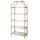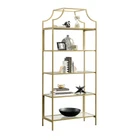 All that glitters is gold. Become a shooting star and break the mold by adding a touch of luxurious style to your living space with this exquisite multi-tiered bookcase from the Nola collection. This multi-tiered bookcase features five open shelves, each with a safety tempered glass surface, adding a touch of style to your home decor. These glass shelves are the perfect place to store books, folders, and other household essentials. Switch it up and use it as a display area to showcase photos of your family, a vase filled with flowers, or any other items that are most precious to you in life. Its rounded edges and curved indented design give it a stunning and unique look that is sure to catch the attention of your friends and family. Made of solid metal with a gold-plated , this sleek and elegant bookcase adds a classic beauty to any room and lets you live in luxury. Be sure to check out the Better Homes & Gardens Nola collection for more great items! Assembled dimensions: 30.00"L x 14.49"W x 70.87"H Open shelving for storing and displaying books, binders, photo frames, collectibles, and more Safety tempered glass shelves for added detail Metal construction for durability Model: 422296 Box dimensions: 65.75"L x 17.13"W x 6.89"H