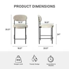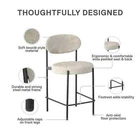 Let the Better Homes and Gardens 24-Inch Boucle Counter Height Stool reinvigorate your routine. Designed with a rounded seat and high curved back, this ergonomic barstool provides exceptional seating support for your counter-height dining room table, kitchen island, or entertainment room bar. The matte black finish on the strong steel frame adds a layer of timelessness, while the Sherpa soft boucle fabric upholstery made from durably resistant polyester brings a cozy element to your space. The 3.5-inch-thick seat, padded with high-density foam, ensures optimal relief for extended sitting. Not only does this counter stool boast midcentury style and modern comfort, but it also features back leg anti-skid caps to protect floors against scratches, front leg adjustable height gliders to prevent wobbling, and footrest bars to offer stability. With a quick 15-minute assembly time and all necessary tools provided, you will be ready to use the stool in no time flat. Sold individually. SHERPA SOFT: Our luxe boucle fabric upholstered and cushioned 24-inch counter-height stool sports ergonomic design featuring a high curved back for ideal support and wide 3.5-inch-thick seating to sink into for kitchen island or dining bar comfort MIDCENTURY MODE: The matte black steel metal frame with secure footrest bars at the bottom and high-density foam padded round seat backed by a strong wood base not only draw your eye to impeccable modern style but to the durable build of the barstool ADJUSTABLE GLIDERS: Back leg anti-skid plastic caps help your floors from getting scuffed or scratched when moving the stool while adjustable height gliders on the front legs keep your stool level on surfaces to prevent wobbliness and offer stability SPEEDY ASSEMBLY: Set aside only 15 minutes to put this item together. All parts, tools, and easy-to-follow instructions are included in box. Wipe polyester-based material clean with a damp cloth, but avoid excessive rubbing to maintain boucle texture SLEEK SIZE: Counter-height stool profile: 18.5"L x 20.5"W x 35.5"H. Seat dimensions: 18.5"W x 18.5"D x 24"H. Weight limit: 250 lbs. Net weight: 14 lbs. 1-year limited warranty. Sold individually. Matching dining chairs available (not included) Brand Better Homes & Gardens Assembled Product Weight 12.44 lb Color Cream Recommended Room Indoor Material Metal Assembled Product Dimensions (L x W x H) 20.90 x 18.70 x 35.40 Inches