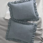 A playful decorative accent for your master bedroom, guest room, or dorm décor, this pillow sham set features blue chambray material with a 2.5-inch ruffled flange around the perimeter for a fun flair. The set includes two standard size pillow shams, measuring 20 inches x 28 inches each. Each sham is made of 100% cotton material that has been prewashed for extra softness and comfort. This pillow sham set is machine washable — you can keep it looking and feeling fresh by machine washing in cold water and drying on low setting. 2-piece standard pillow sham set Features blue chambray fabric and ruffled trim Designed to fit standard pillows – 20 inches x 28 inches with a 2.5-inch flange Made of 100% cotton – prewashed for extra softness Machine washable for quick and easy care