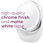 Beurer 5x Magnifying Double-Sided Cosmetic Vanity Makeup Mirror Illuminated | LED Lights | 360° Degree Swivel Rotation| Cordless | BS49 Product Details Size: Cosmetic Brand: Beurer MPN: BS49 UPC: 853879007539 EAN: 0853879007539 Brand: Beurer Room Type: Bathroom Shape: Round Product Dimensions: 6.5"L x 3.5"W Frame Material: Chrome Is Discontinued By Manufacturer : No Product Dimensions : 6.5 x 3.5 x 7.1 inches; 1 Pounds Item model number : BS49 Batteries : 3 AAA batteries required. (included) UPC : Manufacturer : Beurer Country of Origin : China FREE STANDING: The Beurer BS49 features a free standing design (no cords!) - with bright LED illuminated lights for a bright view during use. With a high quality chrome finish and matte white base. MAGNIFICATION: The mirror is double sided and on one side, features 5x magnification to help with more intricate applications, while the reverse side is at normal magnification. DOUBLE SIDED: The double sided mirror features 360 degree swiveling design so you can angle the mirror for easy viewing. LED LIGHTS: The BS49 is designed to deliver bright illumination. The mirror is features 12 LEDs (both sides) to make it easier to see applied cosmetics, or skin more clearly - batteries included. SIZE: The Beurer BS49 Illuminated Cosmetic Mirror is a stylish and practical addition to your dressing room table. The mirror's diameter is approx. 4.3 inches. WE'RE HERE FOR YOU: Our friendly Florida based team is happy to assist you with whatever questions and support you may need. That's right, our customer service is located right here in the USA! Beauty Starts with Beurer. Beauty from head to toe - even and smooth skin not only looks clear and radiant, but it also helps boost and provide you with your daily does of confidence. Support your skin care routine with the rotatable Illuminated Make-Up Mirror, the BS49 by Beurer. The mirror with extra bright LED light also has a 5x magnification. The ideal solution for a glamorous appearance with a fresh, healthy complexion. The Beurer BS49 Lighted Cosmetics Mirror is both a stylish and practical addition to your dressing table. The double sided, free standing mirror is cordless - which provides maximum portability and convenience when in use. The BS49 features a high quality chrome finish - with a white matte base. The mirror is double sided, with one side being 5x magnification, and the other being normal (1x magnification). Designed with 12 bright LED lights on both sides, the swiveling mirror helps you to see your skin more clearly - which is great for illuminating the skin whether for applying makeup or examining your skin. Poor lighting can fool you, especially when applying your makeup - which is why it is important to have bright lights integrated with you cosmetic beauty mirror. SPECIFICATIONS:Double Sided360° Swiveling5x Maginification1x Magnification (normal) Free Standing (cordless) 12 Bright LEDS (on both sides) Mirror Surface: 4.3 in diameterBatteries Included Our customer service is right here in the USA! Feel free to give us a call at +1
