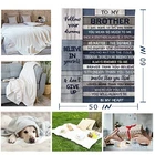 Design Description:Full-Width Printing, Single-Sided Printing, Clear Printing. It'S Wrinkle And Fade Resistant, Doesn'T Shed, And Is Suitable For All Seasons.Size Description:There Are Three Sizes To Choose From, 50 X 40 Inches Suitable For Children,60 X 50 For Teens, 80 X 60 For Adults.Product Performance:The Blanket Is Constructed Of High-Quality Flannel That Is Soft To Touch, Supple, Easy To Care For, And Lightweight, More Comfortable And Warm. Does Not Absorb Any Moisture. Lightweight, Durable, And Can Be Folded Compactly. Super Soft And Feels Great, Anti-Wrinkle, Anti-Allergic, Non-Replaceable Feature, Very Suitable For Those Who Are Prone To Allergies And Discomfort!Applicable Scene:Bed Sofa, Couch, Bedroom, Living Room, Guest Room, Kids Room, Rv, Vacation House. It Is Also Perfect Use For Family Outdoors Activity, Camping, Cinema, Traveling, Sports And Beach.Multi-Function Use:Be Used As Wearable Blanket, Sofa Blanket, Bed Blanket, Travel Blanket, Picnic Mat, Etc. The Outside Has Super Soft High-Quality Fabrics, And The Inside Is White. It Will Be A Special Gift At Birthday, Christmas, New Year'S Day, Thanksgiving, And Bring Fun To Your Family, Friends, Classmates.Easy To Care:It Is Machine Washable, Hand Washing And Dryable For Easy Care. No Shrinkage, No Colour Fading, Durable,And No Unravelling After Washing. But Do Not Use Bleach.Romantic Gift:Give The Blanket To Your Family Or Friends As A Gift. They Will Be Happy! It Will Be A Great Gift For Birthdays, Anniversary, Graduation, Christmas, New Year's Day, Thanksgiving, And Other Festivals. 【MATERIAL DESCRIPTION】: Made Of Non-Pilling Fleece, More Comfortable And Warm. Does Not Absorb Any Moisture. Lightweight, And Can Be Folded Compactly. Super Soft And Completely Resist Shrinkage And Wrinkles. 【SIZE DESCRIPTION】: There Are 60x50 Inches for Brother from Sister or Brother. From Expectant Newborn, For A Baby Toddler, Or Young Children And Teenagers, Adults, That Needs A Warm, Caring, Thoughtful Gift - The Best Brother Birthday Gifts From Sister Or Brother. 【TO MY BROTHER】:I Just Want To Let You Know You Mean So Much To Me. Once A Brother, Always A Brother, No Matter The Distance, No Matter The Difference, And No Matter The Issue. Thank You For Being You. Always Remember You Are Braver Than You Believe, Stronger Than You Seem, Smarter Than You Think, Loved More Than You Know. Wherever You Are, You Will Always Be In My Heart. 【APPLICABLE SCENE】: The Blanket Easy To Carry, It Is Very Suitable For Indoor And Outdoor Use In Cold Weather (Especially During Camping And Picnic) To Provide Continuous Warmth, And It Is Also Very Suitable For Lying On A Bed, Sofa, Car, And Office, Etc. Whether Summer Or Winter. 【PERFECT GIFT】: When You Bring The Blanket For Your Brother, It Will Be A Perfect Gift For Anniversary, Graduation, Birthday, Christmas, New Year'S Day, International Children's Day, Valentine's Day, Wedding, And Other Festivals. It Will Be A Great Gift!