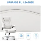 Specifications: Color:White Capacity:400lbs Overall Size: 24.4 * 20.5 * 44.9-48 in Seat Size: 23.9 * 20.5 in Backrest Height: 29.1 in Adjustable Overall Height: 44.9-48 in Adjustable Seat Height: 19.3-22.4 in About this item: Premium Leather & Comfort: The executive office chair features breathable PU leather, providing a smooth, waterproof, and easy-to-clean surface. The highly elastic built-in spring cushion, soft headrest and backrest, and adjustable padded armrests ensure maximum comfort. Support for Heavy Individuals: Our high back office chair has a heavy-duty swivel metal base, SGS Class 3 cylinder, sturdy rubber wheels, and supports up to 400 pounds (recommended weight 175-250 pounds). The spacious seat cushion and back support ensure comfort during long hours of work or study. Ergonomic Design & Adjustability: The leather office chair offers a 360-degree swivel, height adjustment, and adjustable backrest angle for a customized sitting experience. The ergonomic high back design complements gaming tables and computer desks. Versatile Home & Office Use: Our big and tall office chair adds modern style to various environments. Its sleek design is perfect for home offices, workspaces, or as a office chairs for heavy people. Easy Assembly: With all hardware and tools included, this executive desk chair can be quickly assembled using the provided instructions. Complete the installation process in just 10-15 minutes. Package Includes: 1 x An office chair 1 x A clear instruction