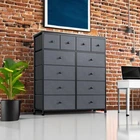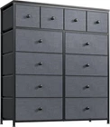 Tall Dressers For Bedroom with Large and Versatile Storage. Tall dresser sizes 12"D x 40.8"W x 43.7"H has 8 large and 4 medium drawers, the fabric dressers for bedroom provides a large amount of storage space. Each large drawer holds 8 pants, 8 sweaters, 12 dresses, 6 hoodies, each medium drawer holds 50 socks, 10 shirts, 15 diapers, 20 underwear for your reference. Easily manage tons of items with this drawer dresser as each drawer has a 12 lbs load capacity. Stronger and larger drawers, for more storage options. Large Drawer Dresser Suits All Your Storage Purpose. Quality dark grey fabric drawers combine with sturdy black wooden top, these gives this chest of drawers for bedroom a simple but chic appearing. Manage all season clothes with this grey dresser in closets or bedroom, use it as nursery dresser to stock diapers or powdered milk, load sundries close to doors or near the entryway, or prepare towels and spare slippers for guests. Fabric Drawer Dresser Built with Excellent Craftsmanship. All drawers of this cloth dresser are made of wear-resisting, long-lasting color fabric, no more worry about scratches, safe and reliable. Made of durable metal frame, this tall storage dresser with two X shape lacing bars ensures a longer service life. A heavy duty wood top combines with the metal structure, prevents this bedroom dressers with drawers from shaking or wobbling. Dressers for Bedroom with Considerate Designs. 4 adjustable plastic feet protects your floor from scratches, while the wooden top of this fabric dresser is covered with waterproof material for easy cleaning. Make sure to install the anti-tipping kit that prevents the tall black dresser from falling or sliding. All drawers are made of thicker fabric that keys and blunt items will not easily leave scratches on the surface. Easy Assembly of the Dresser. Easy to assemble with tools and detailed instructions already included in the box within just 30 minutes. This modern dresser is a good helper for storing clothes and keeping a room clean. Product Description Considering large fabric storage dresser? Take a look at tall dresser with 12 drawers, which maximizes your space saving. Super large 5 tier drawer dresser with 12 drawers is an ideal choice when trying to keep the house organized. This dresser with 12 drawers sizes 40.5" W x 11.8" D x 43.7" H, let it be the best reinforcement to help manage all your stuff. Easy assembly within 30 minutes: bedroom dresser is designed with easy installation structure, all parts were labeled and clear instructions were included, you could assemble this unit within 30 minutes by yourself. A convenient drawer dresser built to last, we designed this chest of drawers with easy pull handles, reinforced support bars and thickened slide rails, with these features this dresser ensures a more convenient use and longer service life. This dresser is perfect for all kinds of rooms, such as bedroom, living room, hallway, university dormitory, playroom. Explore infinite possibilities with 12 drawer dresser, you will be surprised Manage at least 50 socks, 20 shirts, 25 diapers, 8 pants, 6 hoodies, 30 clothes and etc. Available in all home scenes and help you store all potential stuff 12 Drawers Dresser with Super Large Storage Potentials Fabric Drawer Dresser Built with High Quality. All drawers of this cloth dresser are made of wear-resisting, long-lasting color fabric, no more worry about scratches, safe and reliable. Q: Can this dresser be used as a TV stand? A: Yes, it can be used for TV stands up to 55 inches. Q: Do fabric drawers break? A: No, the drawers are of good quality and have a large capacity.
