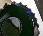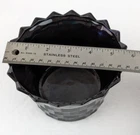 Black Amethyst Cubist Glass Bowl or Planter. Stands 3 3/4" in height with an inside diameter of 5 1/2" or 6" to the very outside. Glows purple when held to the light. Safely boxed delivery will be calculated to your destination.