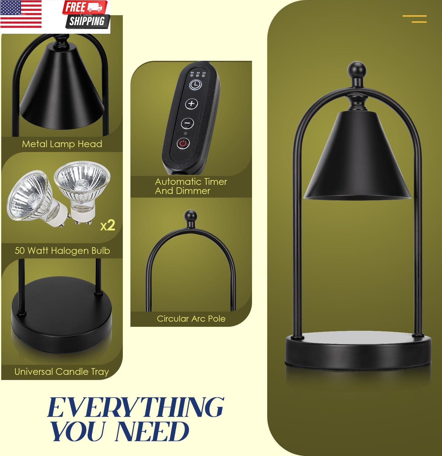 Love this candle warmer lamp! The dimmable feature lets me control the scent intensity, and the timer gives peace of mind when I forget to turn it off. Works perfectly with my favorite jar candles—no more messy wax spills. The sleek black design fits my bedroom decor, and the included bulbs are a nice bonus. Much safer than burning traditional candles! Highly recommend for cozy nights in.