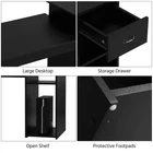 Vertical File Cabinet 2 Drawer Lockable Steel Storage Organizer Office Solution 64.03 USD 67.4 USD Free shipping 5% off 6 Pack 18" x 24" Basic Poster & Picture Frame Lightweight Photos Hallways Black 38.04 USD 40.04 USD Free shipping 5% off 100 Count Single Serve K-Cup Coffee Pods Medium Dark Coffee Favorites Variety US 47.31 USD 49.8 USD Free shipping 5% off 340 Serving Sugar & Honey Powder Blend Emergencies Survival Camping Food Storage 25.81 USD 27.17 USD Free shipping 5% off Rolling 3 Tier Laundry Basket Cart W/ Hanging Rod Lightweight Heavy Duty Silver 68.76 USD 72.38 USD Free shipping 5% off 6 Pack Storage Bin Utility Tote Containers Stackable Heavy Duty Plastic Black US 57.61 USD 60.64 USD Free shipping 5% off Single Mantle Propane Lantern Compact Powerful Sturdy Camping Hiking Outdoors US 25.76 USD 27.12 USD Free shipping 5% off 3 Ton Hydraulic Floor Jack W/SUV Adapter Saddle Vehicles Garage Home Black New 125.59 USD 132.2 USD Free shipping 5% off 40 Servings Emergency Food Dehydrated Diced Carrots Camping Survival Food 38 oz 29.52 USD 31.07 USD Free shipping 5% off RV Step Platform Metal Step Stool Adjustable Height Foldable Supports 1000 Lbs 39.67 USD 41.76 USD Free shipping 5% off 5 Tier Wire Storage Shelf Rack Shelving Adjustable Heavy Duty Warehouses Metal 114.05 USD 120.05 USD Free shipping 5% off 13" Flat Free Tire & Wheel W/ 5/8" Axle Bore Hole Solid Lawn Mower Trailers 2Pcs 41.76 USD 43.96 USD Free shipping 5% off Computer Desk Writing Table W/ Drawer & Storage Workstation Home Office Black US This small spaces office desk is made of a 1.5 cm grade P2 particleboard. It is spacious with 1 ample writing surface, 1 drawer, and 2 storage cubbies. It can be used in a variety of different places and is ideal for offices, home offices, studies and bedrooms. There is ample space in the lower cubbies to store computers and other various items. It has been designed with a robust structure and a large load capacity to hold heavy items. The great design will keep your room clean, neat and organized. It is stylish and chic to blend with any room decor. Material: P2 MDF, melamine veneer Board thickness: 1.5 cm / 0.6 inch Dimension: 112 x 50 x 82 cm / 44.1 x 19.7 x 32.3 inches (L x W x H) Tabletop size: 80 x 50 cm/ 31.5 x 19.7 inches (L x W) Elevated shelf size: 50 x 34 cm / 19.7 x 13.4 inches (L x W) Shelf size: 14.5 x 26.5 cm/ 5.7 x 10.4 inches; 46 x 26.5 cm / 18.1 x 10.4 inches (L x W) Maximum load capacity: Desktop: 50 kg/110 lb; elevated platform: 20 kg/44 lb; shelf/CUP stand: 10 kg/22 lb; drawer: 3 kg/ 6.6 lb G.W.: 24.1 Kg Easy to assemble: All necessary parts and instructions included You may also like Vertical File Cabinet 2 Drawer Lockable Steel Storage Organizer Office Solution 64.03 USD 67.4 USD Free shipping 5% off Portable Golf Hitting Net Set W/ Tri-Turf Mat Easy Assembly Practice Anywhere! 52.11 USD 54.85 USD Free shipping 5% off 5 Qt Stock Pot Multipurpose Pasta Pot W/ Strainer Lid & Handles Nonstick Ceramic 42.24 USD 44.46 USD Free shipping 5% off Industrial Wet-Dry Vacuum Front Mount Squeegee Dust Mop Cleaning Accessory New 100.3 USD 105.58 USD Free shipping 5% off 5 Tier Bookcase Storage Open Shelf Bookshelf Durable Sturdy Living Room White US 46.49 USD 48.94 USD Free shipping 5% off Water Hose Holder 4 Spikes Garden Hose Reel Durable Stand W/Tool Hook Yard Black 48.55 USD 51.11 USD Free shipping 5% off Adjustable Lightweight Rifle Bipod Sling Stud Mounting System Hunting Shooting 51.17 USD 53.86 USD Free shipping 5% off 13" Flat Free Tire & Wheel W/ 5/8" Axle Bore Hole Solid Lawn Mower Trailers 2Pcs 41.76 USD 43.96 USD Free shipping 5% off 2-In-1 Tool Box Chest W/ Wheels Removable Storage Trays Stackable Portable Black 55.65 USD 58.58 USD Free shipping 5% off 3Ton Electric Car Jack Automatic 12V Car Scissor Jack Portable Tire Change Red 62.35 USD 65.63 USD Free shipping 5% off Weave Tower Storage Organizer Easy To Clean Durable Plastic 4 Drawer Household 33.87 USD 35.65 USD Free shipping 5% off Closed Weave Basket Storage Bins Easy Clean Decorative Polyester Black Bedroom 44.76 USD 47.12 USD Free shipping 5% off