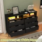 Dresser for bedroom- 6-drawer dresser provides ample storage space for your bedroom, kidsroom, guest room, closet, hallway or living room, keeping your clothes and essentials organized and easily accessible. The dresser includes two top wooden storage cubbies, providing open storage options. Dresser for bedroom- 6-drawer dresser provides ample storage space for your bedroom, kidsroom, guest room, closet, hallway or living room, keeping your clothes and essentials organized and easily accessible. The dresser includes two top wooden storage cubbies, providing open storage options Built in Charging Outlet- This dressers & chests of drawers comes with a built-in charging station featuring 2 USB and 2 AC outlets, making it super convenient to charge your devices right where you are—no fussing with extra wires Multi-Color RGB Led Lights- This black dressers & chests of drawers with built-in RGB Led Strip which can display a variety of colors and different modes ready for different moods and occasions. Customizing your lighting is a breeze – just tap the app or use the buttons to mix it up Durability & Security- Constructed from partical board and non-woven fabric, this dresser is enhanced with a PU finish for extra durability and easy maintenance. A robust iron frame provides solid stability, dispelling any worries about instability. Additionally, it comes with 4 adjustable feet to accommodate uneven floors and prevent scratch damage Can be used as a TV Stand- The drawer dresser measures 47.2" (L) x 11.8" (W) x 33.3" (H). 6 long fabric drawers measure 22.1"L x 11.8"W x 7"H, with each supporting up to 10lbs. The dresser's wood top can hold 200lbs, making it suitable as a TV stand, perfect for TVs up to 60 inches Effortless Assembly- Designed for effortless assembly, this dresser includes straightforward instructions, all necessary tools, and accessories for quick setup. It's not just easy to build but also a stylish and practical addition to any room