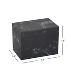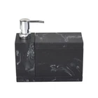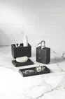 Transform your bathroom with this Black Faux Marble Finish 4 Piece Vanity Organizer Set. Cast from a durable resin composite, the set features a soap or lotion dispenser, an organizer, a lid and a tray. Use separately or together, as one compact bundle. This item is ideal for any bathroom where space is at a premium: your apartment, dorm room or guest bathroom. The faux black marble finish and a chrome-finish pump make it easy to match all home décor and styles. The organizer has 3 compartments that can help organize toothbrushes, toothpastes, brushes, and cosmetic items. The lid of the organizer can be used as a soap dish with its raised surface. Measures: W 7.48" x D 3.46" x H 7.09" Smooth, stone-like finish and hand feel in resin Dispenser holds 10 ounces of liquid soap or lotion Organizer fits most electric toothbrushes and toothpaste Rust-resistant pump head in a chrome finish Faux Black Marble 4-piece Vanity Organizer includes a soap dispenser, organizer with lid and a matching tray All pieces fit into a tray Lid can be used as a soap dish Faux black marble finish Holds 10 ounces of liquid soap, lotion or hand sanitizer W 7.48" x D 3.46" x H 7.09"