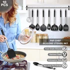 Black Kitchen Utensils Set of 10, Heat-Resistant Silicone Cooking Utensil with