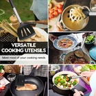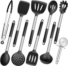 【VERSATILE 10 PCS】 P&P CHEF Kitchen Utensils Set is perfectly fit for various purposes, Include: ●Slotted Spatula, ●Slotted Turner, ●Solid Turner, ●Skimmer, ●Pasta Server, ●Solid Spoon, ●Slotted Spoon, ●Soup Ladle, ●Kitchen Tong, ●Pizza Cutter, This set will bring you excellent using experience 【HEATPROOF MATERIAL】 Our cooking utensils are made of food grade silicone, Will not get musty or produce peculiar smell, Be the greatest replacement for wooden/ plastic cookware, Built to withstand the heat up to 450℉, You can rest assured that it will not melt, warp, discolor or release any toxic substances into your food, Definitely safe and healthy to the human body 【DURABLE &FLEXIBLE】 Featured with heavy gauge stainless steel handle, One-piece seamless design keep it sturdy, Will not break off or fall apart when using, Rust-free and Durable to last for a long service life, Flexible and soft spatula head is great to flip, stir, scrape and fold the most kinds of food without scratching your coated cookware 【EASY USE】 Sturdy handle wrapped in velvety silicone for heat and skid proof grasp, Smooth edge without sharp angles, Prevent cutting you hand, All the utensils are dishwasher safe, Non-stick and stain-resistant attributes make hand-wash in a breeze Big holes at the end of the handles for easily hanging on the kitchen wall 【ECONOMICAL SET】 Save a lot of money than buying them separately, Whether cooking sautéing, stirring or scraping, This utensil set will cater all your needs with their different feature, Best gift idea - Classic color set with a good-looking packaging box, for both aesthetics and practicality, A Ideal present for your friends Product Description P&P CHEF Kitchen Utensils Set of 10 is made of food grade silicone and stainless steel, Will not have any harmful substance into your food, Rust-free and Durable to last for a long service life. Have high-strength flexibility, Corrosion and heat resistance, Bringing you a healthier cooking experience. The 10-Piece cooking utensils will meet all your needs, such as cooking/ serving/ mixing/ preparing, etc. Perfect kitchen tools for your everyday cooking. WARM TIPS: ✔ Please Do Not rub them with a sharp metal. ✔ Please Do Not Directly Flame Fire on the Utensil. ✔ Please don't leave them in the sun for a long time. ✔ Please wash with soft dishcloth in warm, soapy water. ✔ Please dry them after washing, Store in dry place for their durability. SPECIFICATION: Material: Silicone, Stainless Steel Color: Black PACKAGE INCLUDE: ● Slotted Spatula ● Slotted Turner ● Solid Turner ● Skimmer ● Pasta Server ● Solid Spoon ● Slotted Spoon ● Soup Ladle ● Kitchen Tong ● Pizza Cutter ADVANTAGES: Certified Quality - Free from harmful substances, Healthier for daily cooking, Better than typical plastic/ wooden utensils. Dishwasher safe - Dishwasher safe without taking your valuable time, Also easily clean up by hand-wash. Easy Storage - Big hole at the end of the handle, Easy to hang on the kitchen wall, convenient to save storage space and get them when you need.