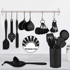 【28 PIECE UTENSIL SET】Our 28Pcs cooking utensil and spatula set will meet your all kinds of needs in kitchen, More convenient for cooking, baking ,serving and mixing, Including slotted turner/ladle, soup ladle, slotted/solid spoon, pasta server, large/small spatula, spoon spatula, silicone brush/kitchen tong/mat, 2 oven mitts, small jar spatula, egg beater/separator, 5 measuring cups and 5 spoons and a holder 【FOOD GRADED & DURABLE】Utensils and measuring cups are made of food-graded silicone and plastic, No materials, No peculiar smell, No musty or no chipping, More durable than the wooden, Silicone head could protect your non-stick pan from scratch,Proper maintenance could extend their service life even extend the life of your pots and pans! Black set is classic and popular to join your modern kitchen, To be a good gift choice 【FOR DAILY USE】Each silicone utensil is up to 446℉, Easy to serve hot food by our utensil, like serving soup by soup ladle/whisk hot butter and sauce by spatula/stir fry vegetables by turner, Meet your everyday cooking needs, DO NOT put them near open flame or put them in the burning pot for a long time if nobody cares, Trying put the utensil on the mat to reduce the risk of melt 【ERGONOMIC DESIGNS & EASY TO USE】Our handle of the utensil conform to ergonomic, Skid resistant surface and handle shape for grip effortlessly whether or not your hand is wet, The big hole on the handle end for easy to hang on the pothook, Also can put them in your holder, To maximize cabinet space saving, Lightweight and easy taking for camping, Easy to clean by hand, Just rinse under running water or throw them in the dishwasher 【ACCESSORIES IN KITCHEN】In our utensil set, no only have utensil and spatula, also have some accessories, making your baking more convenient, Egg separator helps to separate the yolks from egg, 10 pieces measuring cups and spoons with a accurate measurement of food, Silicone brush for brushing sauce on meat, Silicone mat could keep your utensil more hygienic and clean, Oven mitts could help to move heated pot or food to protect your hand from scald