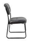 Fully upholstered in Black Leather Plus. Polished tubular steel frame coated with Black scratch resistant finish. Thick contoured cushions for added comfort support. Moves smoothly over hard surface ad plush carpeting. Contoured seat and back provides firm lumbar support. Fully upholstered in Black leather Plus Thick contoured cushions for added comfort support Moves smoothly over hard surface and plush carpeting Contoured seat and back provides firm lumbar support Overall dimensions: 23"W X 24"D X 34"H; Weight capacity: 275 lbs.