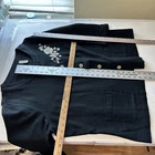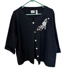 This elegant cardigan features a delicate floral embroidery, adding a touch of sophistication. The button-front design and 3/4 sleeves make it versatile. • Button-front closure • Two front pockets • 3/4 length sleeves • Floral embroidery detail _Linen/cotton blend Top to bottom = 26 inches