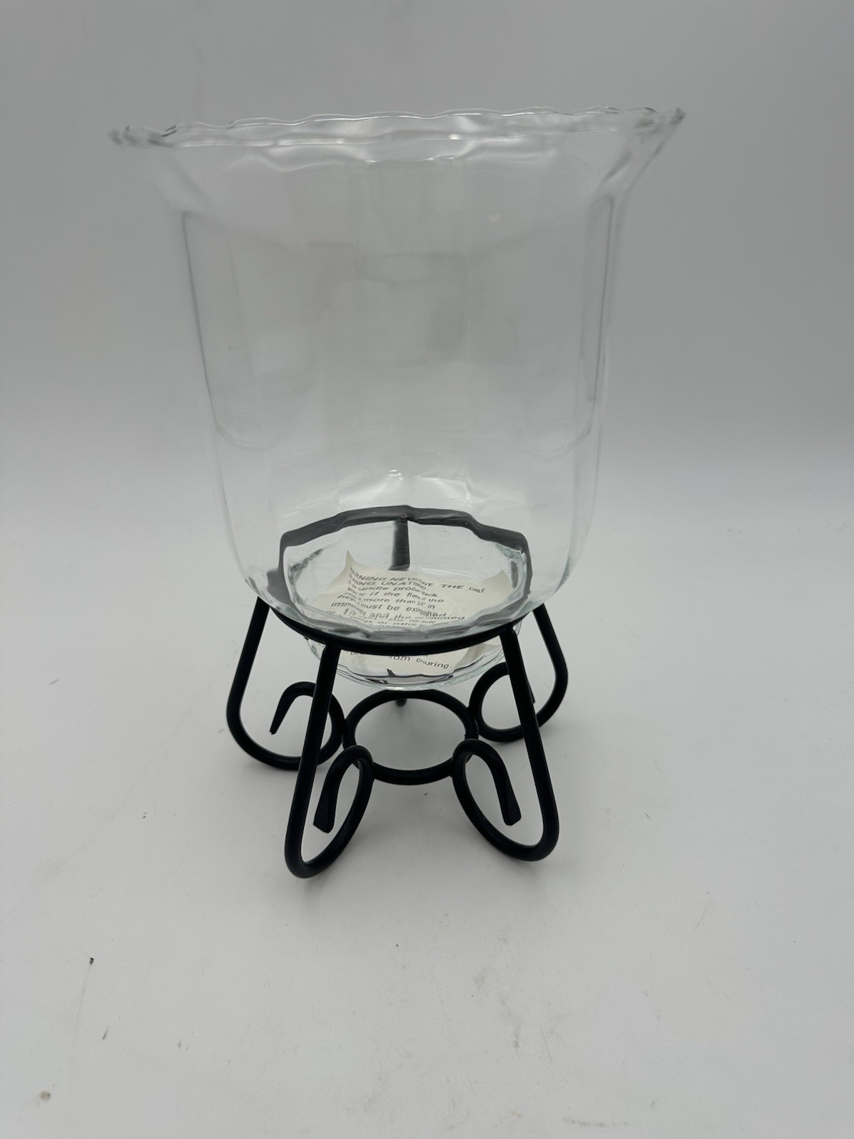 Black Metal & Glass Handcrafted Candle Holder with Wire Accents