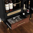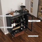 Product Description About this item 【Partitioned Storage】: The wine bar cabinet has ample internal storage space with 3 integrated stemware racks. The pull-out wine bottle storage space is convenient and quick(the drawers are smooth gliding). The bottom drawers can store bar tools, and independent cabinets with removable shelves can freely customize the space according to the size of the items. 【High-quality Materials】: This coffee bar cabinet is made of high-quality MDF, paired with tempered glass cabinet doors, and supported by 4 sturdy metal legs for long-term use. Environmentally friendly lead-free paint is safe and healthy. Just wipe it with a damp cloth in daily life. 【Exquisite and stylish design】: This liquor buffet cabinet is available in two finishes. Gold accessories embellish the stylish green and classic black, creating a timeless modern look. It is perfect for adding a touch of elegance to your dining room, living room, or kitchen. 【Space-saving design】: This compact bar cabinet with storage measures 37 inches x 14.96 inches x 31.49 inches, suitable for placement in any room without taking up space. It is a stylish and practical solution for storing beverages, glassware, and bar necessities. 【Easy to Assemble】: Designed with user-friendly assembly in mind, this buffet storage cabinet comes with clear instructions and all necessary hardware. Each component is labeled for easy identification, simplifying the assembly process. You'll have your home bar installed in no time. Modern Coffee Bar Cabinet Liquor Buffet Cabinet Pull-out Wine Bottle Storage 3 Rows Wine Glass Holders Smooth Waterproof Tabletop Sturdy Metal Legs