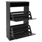 This shoe storage cabinet is a game-changer for small spaces! The sleek black design fits perfectly in my entryway without looking bulky. It holds 8 pairs securely, and the flip-down doors make grabbing shoes super easy. Assembly was straightforward, and the PVC material feels sturdy—no wobbling even when fully loaded. Love that it hides clutter while keeping everything within reach. Perfect for sneakers, flats, or small boots. Highly recommend for anyone needing smart, stylish storage!