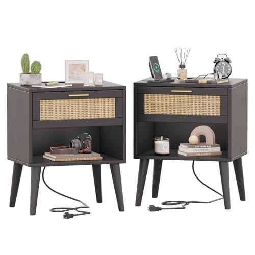 Return Policy Fast Delivery Trusted seller Nightstand Set of 2, Bedroom Night Stand with Charging Station & Rattan Drawer, Boho Style Bed Side Tables with Solid Legs, Accent End Table with Open Storage, Black and Natural BZZ007BME02 Product Description Elegant Design: Are you looking for a storage table that matches the color balance of your home? Now this rattan bedside table with the size 17.7"L x 15.7"W x 22.8"H comes with wooden color, which can fit well in your house, and the rattan drawer also brings a charming boho vibe to your space Two Is Better: Coordinate your home space with the rattan nightstands set of 2! Each night stand with 2 AC outlets and 2 USB ports can help you charge the multiple electronic devices at the same time, such as phones, i-pads, laptops and lamps etc. Large Storage Space: T is a wide tabletop, spacious drawer and open shelf for this bed side table, providing ample storage capacity to store daily items such as keys, mobile phones, frames ornaments, books, magazines and other personal items Stable & Multifunctional: With sturdy EPA-grade particleboard for the overall body and solid legs, making the end table stable enough. Not only can be used as a night stand, but also a side table, coffee table or storage cabinet and other tables Easy Assembly: It's easy to put together with detailed, step-by-step assembly instructions and numbered accessories, so just follow the steps and trust your hands, you can get a practical rattan bedside table Shipping Returns Payment Shipping Shipping is FREE to all addresses other than APO/PO boxes in the lower 48 states. All our stock ships from US-based warehouses. Shipped via USPS or UPS (depending on location and package weight) Unless stated otherwise, all orders will ship within 24-72 hours of your payment being processed. Check our feedback to see the great reviews of FAST shipping we offer. Returns Seller does not accept returns Payment We currently accept payment via eBay managed payments only. Once payment is cleared, we will dispatch your shipment within 1-3 business days. Please refer to the "Shipping" tab for more information regarding shipping speed to your destination.