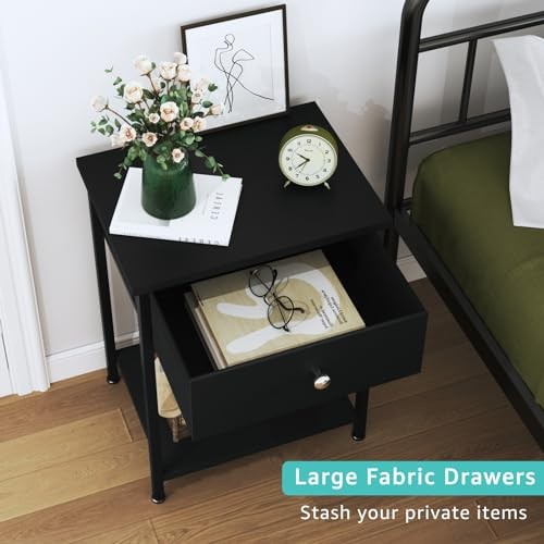 Return Policy Fast Delivery Trusted seller Black Nightstand Set of 2,Night Stand Set 2 with Drawers,Small Nightstand with Storage Bedside Table for Bedroom, Dorm, Modern End Table Product Description ✔[LARGE CAPACITY FOR SMALL SPACE]: Overall dimension: 13.8"D x 17.8"W x 22.8"H.Drawer dimension: 13"D x 15"W x 5.1"H.Each drawer support to 10 lbs,the top wood could support to 35lbs,open shelf support 20 lbs. ✔[FABRIC DRAWER WITH WOOD FRONT]: This night stand has FABRIC drawers with wood front,elegant look and easy to clean,removable Wooden handle.Storage open shelf,offer stable support and ensure years of use,convenient to clean. ✔[MODERN WHITE STYLISH FIRNITURE]: The simple and modish design of the bedside furniture matches perfectly with any furnishing style. Could be a nice small piece of furniture to be placed in easy-look place ✔[GET AWAY FROM HEAVEY BULKY FURNITURE]: High quality STEEL FRAME , drawers super easy to slide in and out. 4 adjustable feet to protect floor from scratches.Lightweight and easy assemble if you are headache with wood furniture. ✔[MULTIPURPOSE USE]: This small nightstand white is ideal for bedroom, college dorm, living room, office and more. A convenient end table by sofa or a toy organizer in children's room. Shipping Returns Payment Shipping Shipping is FREE to all addresses other than APO/PO boxes in the lower 48 states. All our stock ships from US-based warehouses. Shipped via USPS or UPS (depending on location and package weight) Unless stated otherwise, all orders will ship within 24-72 hours of your payment being processed. Check our feedback to see the great reviews of FAST shipping we offer. Returns Seller does not accept returns Payment We currently accept payment via eBay managed payments only. Once payment is cleared, we will dispatch your shipment within 1-3 business days. Please refer to the "Shipping" tab for more information regarding shipping speed to your destination.