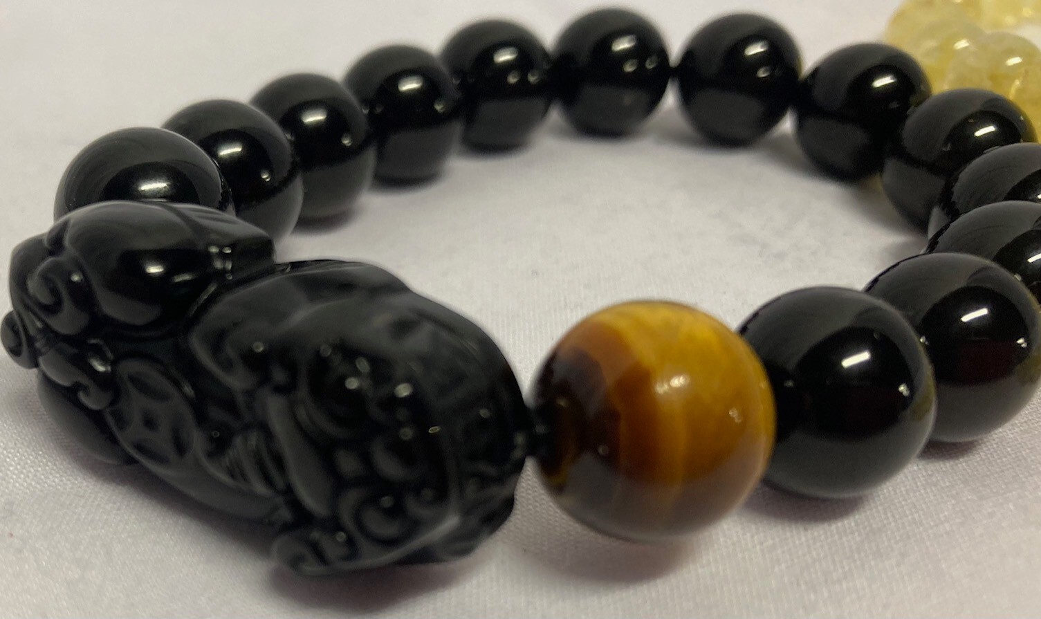 Black Obsidian Citrine Feng Shui Wealth Healing Bracelet Set of 3