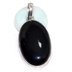 Black Onyx 925 Silver Plated Gemstone Pendant 2" Aesthetic Jewellery JW