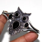 Black Onyx 925 Silver Plated Owl Gemstone Bangle FreeSize Unique Jewelry JW