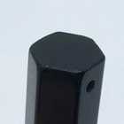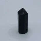Point of black onyx crystal. 1.25 inches tall, 0.5 inch diameter. Weighs 10 grams. Hole for chain or cord to be worn as a pendant.