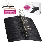 Product Page Florida Brands Padded Clothing Fabric Hangers for Women Clothing - Set Kitchen Description: Features: PADDED SATIN HANGERS – Our padded hangers are elegant, soft and abundantly padded. The no shoulder bump design won't scratch or tear at the shoulders or edges. ELEGANT BOW HANGER – Each clothing hangers for women clothing features a smooth, silky satin fabric around a flexible foam core with a natural pretty bow shape. DURABLE BLOUSE HANGER – solid padded hangers for women clothing can hold up firmly of your garment. A rotating gold hook is of excellent quality and allows you to hang up your clothes easily. PERFECT SIZE AND SHAPE – Our soft and decorative black & ivory satin hangers for Knits come in a Set of 12. Dimensions are approximately 7"H x 15½"W x 1¼"D. BRING LUXURY TO EVERYDAY LIVING - Treat yourself and your clothing to a set of satin padded hangers and instantly upgrade the look of your lingerie and clothes.