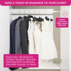 These padded hangers are a game-changer for delicate clothes! The soft satin prevents slipping and shoulder bumps, keeping my blouses and dresses perfectly shaped. The elegant bow detail adds a nice touch, and the sturdy foam core holds even heavier items without bending. Love that they're thick but lightweight, saving closet space while looking chic. No more stretched-out necklines or snags—just smooth, organized storage. Perfect for silks, knits, and everything in between! Highly recommend for keeping your wardrobe in top condition.