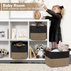 Cube Basket for Home Organization - Material: Soft & durable cotton - Color: Black - Size: 13"" x 9.8"" x 9"" inches Different ways to display the baskets: - Living room: Perfect to hold blankets beside the sofa or hold remote control on the coffee table. - Bedroom: Store your pillow covers and skin care products. - Kid's room: Soft material perfect for storing toys, clothes and diapers. NOTE: - Packing: The basket is folded when shipping, you can iron it or stuff it with blankets for several days to reshape it. - Cleaning: Easy to clean by machine washing. - Storing: You can fold the basket when it's not in use, which doesn't take up your space. Organization Solution. These farmhouse baskets are eye-catching and space-saving. They can bring style to your office and entryway and add zest to your shared family spaces like living room, family room, bathroom, closet Multi-purpose. Measuring 13 x 10 x 9 inches, these storage baskets provide an organization solution for keys, hats and scarfs on the entryway table, socks and underwear in the closet, toilet papers and towels on the shelf over the toilet, remote control and magazines on the coffee table. Helps you hide clutter and keep your home tidy Handle Design. This cotton rope basket is designed with two sturdy handles on both sides, which makes this basket portable and allows you to move the basket around your home with ease Soft Basket. These woven baskets for storage are made of cotton rope with a soft touch, which is perfect for home use, especially for children and pets. Different from a wicker or rattan basket, this basket will not scratch your hands, clothes and floors. It can also be a gift basket for Baby Shower, Mother's Day, Thanksgiving and Christmas Day Note. The cube storage bin is folded for shipping. It will turn back to its elegant shape quickly by filling it with towels or blankets, and ironing is a great idea to regain the creases. Also, you can fold it into a flat shape for easy storage when not in use
