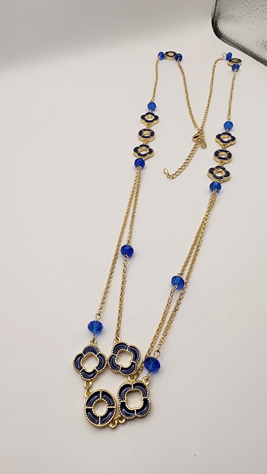Enhance your jewelry collection with this exquisite necklace from HSN. The necklace features a black open clover and open circle pendant with a gold tone chain. The pendant shape is round and the closure is a hook. The necklace is perfect for any occasion and can be worn to enhance your beauty and fashion statement. The necklace is made of enamel, metal chain, and beads, and the necklace length is 40 and 1/2 inches. The necklace is a part of the From HSN brand and is a great addition to your collection.