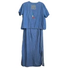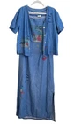 Blue Eyed Bear Denim Dress Set with Short Sleeve Top Womens Medium Chambray 90s Art to Wear Hand Painted Blocked in Naples Florida. Sheath style square neck dress with short sleeve button front top. In good pre-owned condition! No stains, tears or other signs of wear noted. Please see photos for more details and approximate measurements. Sold as pictured. Thanks for looking!