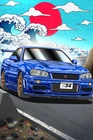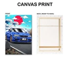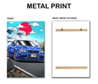 Blue Vintage Car & Red Sun with Waves Art 40x60cm Canvas or Metal Print Wall Art