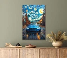 Blue Vintage Car and Vibrant Starry Night 40x60cm Canvas or Metal Print Wall Art