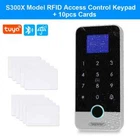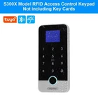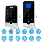 Bluetooth Tuya APP Smart Fingerprint RFID Access Control Keypad Touch IP65 Waterproof 13.56MHz Door Opener Keyless Lock System WG26 Product Specification: Material: high quality ABS plastic Working voltage: DC 12V Working current: 500mA Fingerprint capacity: 300 Card capacity: 1000 Password capacity: 1000 Panel: touch screen panel Working frequency: 13.56MHz Card reading type: support MF 1K compatible card Card reading distance: 0-5CM ldentification method: Fingerprint, RFID Card, Password, Tuya APP. Record capacity: Mobile phone APP remotely view the latest door opening information. Backlight: has white backlight Waterproof function: IP65 Doorbell button: support wired doorbell Display Language (S300X): Supports Chinese, English, French, German, Spanish, Latin, Romanian, Italian. Working temperature: -20。C ~ 50。C Working Humidity: 20% ~ 90% Product size of S300A: 132*75*18mm Product size of S300X: 163*75*18mm Product Details: 1.8inch Color TFT Screen, Easy to program with the display. Display supports Chinese, English, French, German, Spanish, Latin, Romanian, Italian language Time and date show on display when standby(S300X model) 360 degree comprehensive fingerprint recognition, fast identify speed For different angles of fingerprints, it can be quickly and accurately identified IP65 Waterproof. Can be installed outdoor. Has a door bell button, can install a wired door bell. White backlight keypad. The digits number can be seen clearly even at dark. Can set Normally Open model Frequent entry and exit can be set to normally open model Support Fingerprint, RFID Card, Password, Tuya APP, dual verification to unlock the door Support 300 Fingerprints, 1000 RFID cards, 1000 password user capacity, Mobile phone APP remotely view the latest opening information, more secure! Support Tuya APP remote unlocking Support only one mobile phone to use Tuya APP. Need to delete device if other people want to use Tuya APP About Tuya APP 1) Supports language: Chinese, English. 2) Can add fingerprints, password, RFID cards on the APP, it's very convenient. 3) Can unlock the door with Tuya APP unlocking button, or Tuya password. 4) Can view unlock records. Click reminder information to view logs. 5) Support only one mobile phone to use Tuya APP. Need to delete device if other people want to use Tuya APP. Tuya APP Setting Instruction 1) Scan QR code, or Search "Tuya" on App store to download it. 2) Turn on Tuya APP to add new equipment. 3) Trun on bluetooth, Select "Auto scan", click "Searching". 4) Connect with available devices, click "Next". 5) Connecting, Added successfully, click "Done". 6) Click setting, turn on "remote unlock setting". 7) Select user, click "+" to add user, fill in name, click next step. 8) Add user fingerprints, Code, Cards. 9) Add ordinary user by clicking ordinary member “+”. 10) Add code user by Time-Limited: input phone number, set effective time and ineffective time, click "Send". 11) Add temporary code: click "One-Time'", input phone number, click "Send". (Notice: The code valid time for 1 hours and only can be used once.) Easy installation and operation Based on advanced technology, fast recognition speed, high sensitivity. S300X Model, with 1.8inch display screen. S300A model, without display screen (other function is same with S300X model) RFID Keyfobs: Material: ABS Operating frequency: 13.56MHz Detection range: 0-5cm Each card pre programmed and has a metal keyring. Wiring Diagram (The power supply, electric locks, door exit button are not included in the package, need to purchase extra.)