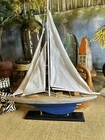 Elevate your space with a touch of maritime charm with our Wooden Sailing Ship Model. This beautifully crafted ornament boasts intricate details that capture the essence of a serene sea voyage. At 18 inches in height and 14 inches in width, it's the perfect size to make a statement on any room's wall or mantle, adding a nostalgic and decorative flair to your home or office. Crafted from synthetic material with a classic blue color scheme, this sailboat statue resonates with the spirit of nautical adventures. It is a vintage piece that does not require any additional parts and can be displayed in a vertical orientation without the need for batteries. Designed for everyone from kids to adults, this unbranded model is an ideal gift for various occasions, including birthdays and holidays, or simply as a thoughtful addition to your own collection. Good vintage condition. See all pictures. Thank you! You will receive the beautiful sailboat that is within the pictures. All other items are those items that I will be listing either this week or next week in my Ebay shop. ( YouBeYou LLC ) So, you will get a sneak peak of what is coming up next! :) If you have any questions even after you have purchased the item --- I am here for you to answer any questions that you may have! I strive to work diligently with every buyer to ensure they are a satisfied buyer, so please contact me anytime. This is a pre-owned item and I take great care to accurately describe the item but please see the pictures for full details. While we do our best to list every item in detail, these are vintage and pre-owned items, and some flaws are to be expected. Please see all photos/ video as they are a large part of the description of our items. Items come from a smoke-free environment. Each item is described in accurate detail with multiple measurements and various photos at different angles front and back, side to side, top and bottom. I have additional similar items that I have yet to list that you may be interested in. Feel free to follow my store ( YouBeYou LLC ) to see those when posted. Please see all photos/ video as they are a large part of the description of our items. I strive to make every purchase a pleasant experience. Please feel confidence in you purchase that I'll make every effort to correct any issues that may arise. If used, there are always some signs of wear -- well, because it is used, vintage, or antique. Most items are used -- Each item is inspected for quality. It is very important to us that you have a happy Ebay experience! Thank you for supporting a small business like ours! (Note: pictures may include measurements, and some have a video.)