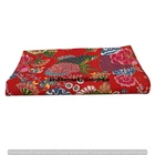 Bohemian Red Floral Queen Kantha Throw Blanket Hippie Coverlets Cotton Bedspread