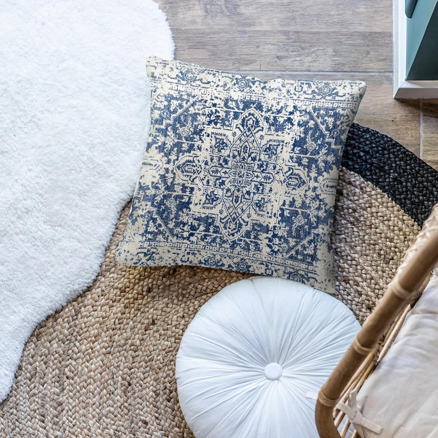 Boho Pillow Covers 20x20 Inch, Carpet Blue 20" x (Pack of 1), Style 1 Product Details Pattern: Print Material: Polyester & Polyester Linen Color: Style 1 Product Dimensions: 20"L x 20"W Style: Moroccan Brand: Knagsfa Theme: Boho Shape: Square Number of Items: 1 Special Feature: Fade-Resistant Number of Pieces: 1 Room Type: Living Room, Lounge, Home Office Product Care Instructions: Machine Wash Pillow Type: Throw Pillow Occasion: School, Housewarming, Birthday, Home Closure Type: Zipper Recommended Uses For Product: Shopping, Home Weave Type: Plain Manufacturer: Knagsfa Seasons: All-Season Unit Count: 1.0 Count Is Euro Pillow Size: No Water Resistance Level: Not Water Resistant Item Weight: 3.52 ounces Country of Origin: China Item model number: X Fabric Type: Polyester & Polyester Linen Batteries required: No Polyester & Polyester Linen THROW PILLOW COVER: Boho Pillowcase of 20×20 inches. Due to manual cutting and sewing, please allow a deviation of 0.5-2 cm. The invisible zipper design is easy to refill.The pattern is a single-sided design . Note: Only one pillow cover, Excluding Pillow Insert EXQUISITE DESIGN: The pillowcases are designed with interesting Boho ethnic style retro pattern, different themes, and different styles. As excellent home decoration sign, they are seasonal pillowcases, suitable for spring, summer, fall, autumn and winter LINEN FABRIC: Our throw pillow covers are made of Polyester & Polyester linen, durable and comfortable, no odor, no fading, no harm to the skin, don't worry about harm to children and pets, can be machine washed or hand washed EASY TO INSTALL: Designed with an invisible zipper, the zipper seamlessly blends with other fabrics, open the zipper to easily Install the pillow insert, very easy for insertions and replacements and meanwhile keeps an elegant look PERFECT DECORATION: Our pillowcases are not only apply to indoor places such as living room, office, guest rooms, restaurant. But also suitable for outdoor places such as car, beach, garden, yard. They are the best decoration choice for sofa bench and lounger