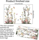 Decorative Wall Decals: This set includes 3 sheets of peel-and-stick wall decals featuring boho flowers design with wildflowers, butterflies, fairies and mushrooms. Versatile Decor: Boho-inspired wildflower wall decals with fairy and mushroom accents, perfect for adding a touch of nature to living rooms, bedrooms, or offices. Large Size: Each decal sheet measures 30cm x 90cm (11.8in x 35.4in), with a combined finished size of 137cm x 38cm (53.9in x 15in) when installed, offering ample coverage for transforming walls into captivating floral murals. Easy Installation: Peel-and-stick design allows for hassle-free application and removal without damaging walls, making it perfect for renters or those who love to update their decor frequently Removable Design: These wall decals can be repositioned or removed without leaving residue, enabling versatile decor changes. Bring the beauty of nature into your living space with these stunning boho flower wall decals. Featuring a delightful array of wildflowers, mushrooms, fairies and whimsical butterflies, this set of peel and stick wall decal is perfect for creating a serene and enchanting atmosphere in your living room, bedroom, or office. The vibrant colors and intricate details will instantly elevate the ambiance of any room. With a finished size of 53.93 inches wide x 36.61 inches high when assembled, these removable decals are easy to apply and reposition, allowing you to transform your walls without damaging them. Embrace the bohemian spirit and let these delightful floral wall decals add a touch of magic to your surroundings.