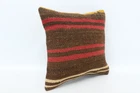 Boho Pillow, Vintage Kilim Pillow, Turkish Pillow, 14"x14" Brown Cushion