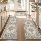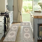 【Kitchen Runner Rugs Sets 3 Pieces】Yamaziot Boho kitchen rugs measure 20 "x32"+20 "x47"+20 "x59", which can perfectly match your home's decoration style. This vintage runner has elements of bohemian and traditional to give an elegant look to your home 【Non-Slip Kitchen Rug】The boho kitchen floor mat set are made of high-quality polyester that provide an incredibly soft and plush surface to walk on. Our Kitchen rug has TPR rubber backing against slipping or tripping which can place firmly and securely 【Machine Washable Rug】The kitchen runner is stain resistant and easy to clean. Spills can be easily wiped off and vacuuming for daily cleaning. Washing machine is also available for a deeper clean. Wash in cold water and do not add bleach 【Durable & Low Pile Rug】 The kitchen rugs are crafted from polyester fabrics that resist wear and tear. The reinforced overlock edges make it more durable. With 0.3'' thickness, that is convenient for placement in entryways and will not obstruct doorways 【Widely Use】 Yamaziot bohemian kitchen mat set of 3 can be used in front of sink to do cleaning or prepping meals. In addition, this washable runner rug can also be used in the hallway, laundry room, or even as a stylish accent in your living area Product description Yamaziot Boho Washable Kitchen Rugs Sets of 3 Reinforced Overlock Edge & Non-Slip Rubber Backing Our washable rugs have high-density stitched edges for a stronger construction and more long-lasting. The non slip TPE rubber backing can effectively keeps the kitchen rug in a stable position and prevents slipping. Boho & Vintage Design A vintage appeal and functional addition to your home decor. Its d istressed design and fashion style fit for many different types of home decor and add a touch of sophistication to your living space. Ultra Soft & Low Pile Rug The kitchen rugs are made of High quality polyester material with a great touch to provide soft and comfortable support for the soles of your feet. The kitchen mats have a low pile height (0.3 inches) that allows for convenient placement in entryways that will not obstruct doorways. Stain Resistant & Easy Care The kitchen rugs sets of 3 can protect your kitchen floor from moisture and stains by keeping it dry and clean. Its surface is stain-resistant and spill can be wiped with a damp cloth. Cleaning Guidance Multiple Application 1. How to get rid of the creases ? Use your hand to gently smooth them out or back roll the rugs, and leave it for several days to allow time for creases to flatten. 2. What is the material? Is it non slip? The kitchen rug is made of high quality polyester material and TPR rubber backing, which is underfoot comfort and non slip. 3.How to clean the living room area rug? This kitchen rug is stain-resistant and spill can be wiped with a damp cloth. Deep Cleaning with washing machine. Tips: Wash in cold water and do not use bleach. Lay to air dry.