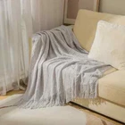 Chunky Knitted Tassel Blanket Vintage Farmhouse Luxury Throw Bedspread