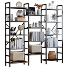 Size: 69.3" W x11.8" D x69.3" H. Each shelf of this storage book case can hold on to 66 lbs Features with 14 open shelves, this Triple Wide large display shelf can maximize the vertical storage space while keep your daily essentials in organize Made of solid MDF boards and stylish matte black iron brackets,the industrial color make this display rack well match your other furniture for your living room, bedroom, study or office Tipover Resistance Device prevent the bookshelf from toppling or wobbling Eight Large Iron Frame, Simple sructure, the clearly part numbers and installation steps make the assembly much easier The adjustable bottom small feet and X shaped brackets can keep balance and stability of the bookshelf