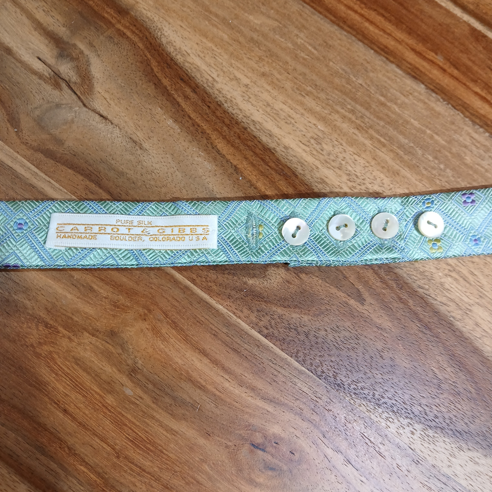 The Men's Bow Tie by Carrot & Gibbs is a designer accessory hand-sewn in the USA from 100% silk fabric. Featuring a geometric pastel floral pattern in multicolor, this adjustable bow tie is classic in width and perfect for any formal occasion. With its high-quality construction and unique design, this bow tie adds a touch of sophistication to any outfit, making it a stylish choice for the modern gentleman.