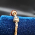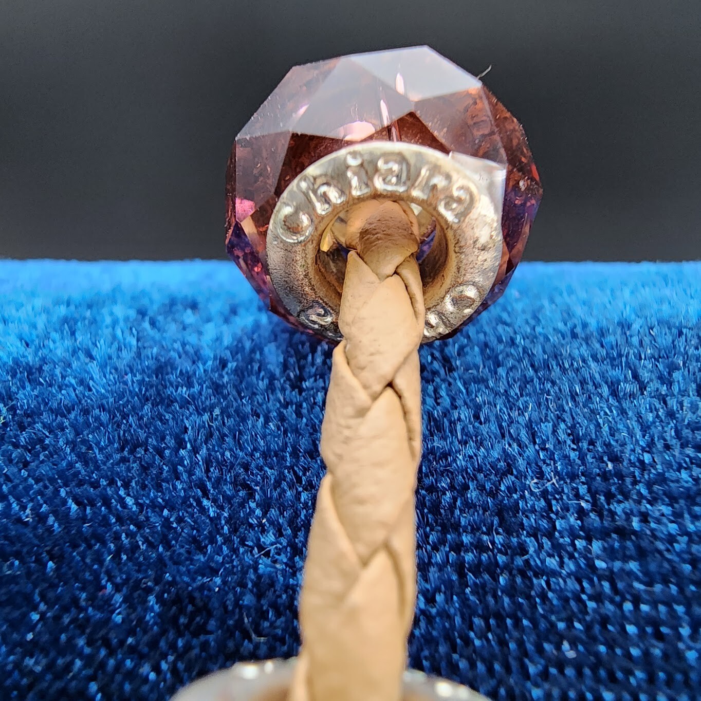 Chiara Tan Braided Leather Pink Heart Lamp Work Glass Crystal Bead Silver Tone Bracelet Pandora Like Barrel and Torpedo Closure Fleur De Lis Beads Enamel 7 1/4" Possible Murano Glass Beads. Not Sterling.
