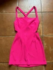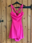 Brand new Coast bright pink cross back mini dress Size 10 Still with tag Length (from underarm to hem) - approx 23" Criss-cross straps at back Opening at back 95% polyester, 5% elastane Zip down back