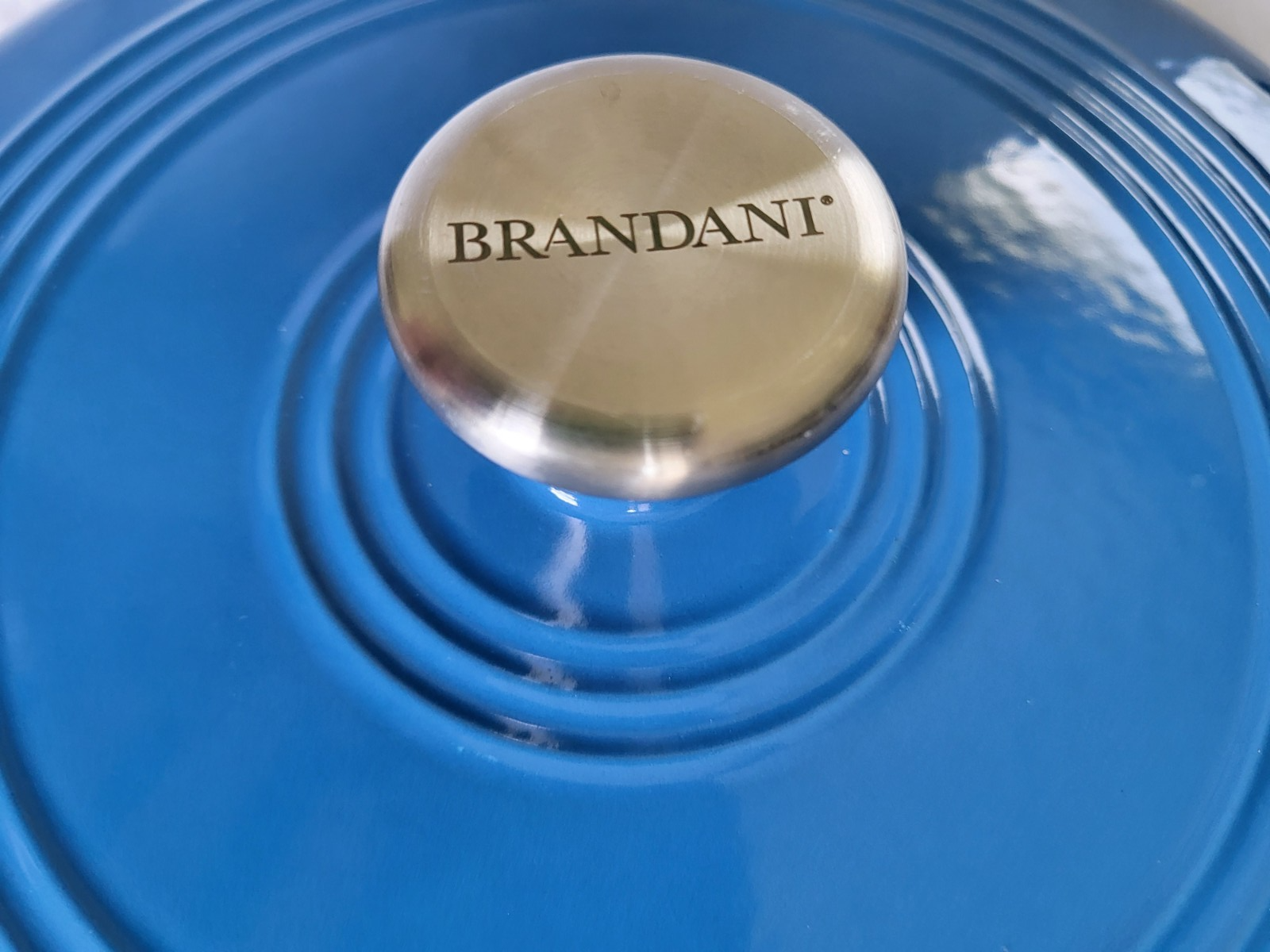 Original/Licensed Reproduction:OriginalSet Includes:LidColor:BlueShape:RoundType:Dutch OvenSeller Notes:“There is light wear around the rim from contact. There are a few gray blemishes on the bottom.”Type of Oven:Electric, GasVintage:NoBrand:BrandaniItem Width:--Antique:NoItem Length:--Material:Cast IronStove Type Compatibility:Electric, Gas