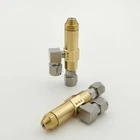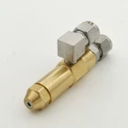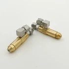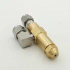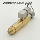 Brass waste oil burner nozzle with connector burner machine oil injector diesel heavy fuel tip boiler combustion Product Details: Total length: 78mm Material:BRASS Air inlet:1/4", Gas/Oil inlet: 1/8", Bore diameter: 0.5MM 0.8MM 1.0MM 1.5MM 2.0MM 2.5MM 3.0MM 3.5MM Nozzle size: 9/16" Features : · The use of compressed air to swirl inside the tubes and mix the atomized droplets impact. · Can produce tiny micro particle size mist particles at low pressure and low volume conditions. · Can control the air flow and pressure to adjust the spray flow, angle and size granularity. · Since the fluid passage of nozzle is large, it have a good anti-clogging effect. · In the heavy oil, waste oil burner, oil and other application viscosity of the liquid atomization effect is very good. · The working pressure range is 0-10/kg/cm2, different flow capacity needs different filter screen Flow capacity range is 1.5-1.7 L/h, needs a 45um oil filter screen Flow capacity range is 1.89-3.78 L/h, needs a 75um oil filter screen Flow capacity range is 4.76-5.10 L/h, needs a 125um oil filter screen Flow capacity range is 5.68-41.64 L/h, needs a 140um oil filter screen Flow capacity over 45.42L/h, no need for oil filter screen Working pressure is 3 bar: 0.5mm diameter, the liquid water flow is 4 L/H; 0.8mm diameter, the liquid water flow is 6 L/H; 1.0mm diameter, the liquid water flow is 8 L/H; 1.5mm diameter, the liquid water flow is 11L/H; 2.0mm diameter, the liquid water flow is 14L/H; 2.5mm diameter, the liquid water flow is 17L/H; 3.0mm diameter, the liquid water flow is 20L/H; 3.5mm diameter, the liquid water flow is 23L/H; 4.0mm diameter, the liquid water flow is 26L/H; The siphon height is 30cm, and the spray angle is 15-45 degree. Kindly be noted above data is base on water for reference Test: Normally the working pressure is 3 bar, for 1.00mm version, the liquid waste is 10L/H. For 2.0mm version, the liquid waste is 19L/H. For 3.0mm version, the liquid waste is 28L/H. The capacity tolerance is ±10%. The siphon height is 30cm, and the spray angle is 45 degree. Kindly be noted above data is base on water for reference, if you use other liquid, you can calculate it by the proportion of density. Installation: The air compressor should be capable of providing at least 10% more air than the specified values. All fuel and airline connections must be tight. Any leaks, especially in the fuel line, will have an adverse effect on the lift characteristics. The nozzle will flow in either a horizontal or vertical position. The lift distance for a vertical mounted nozzle is measured from the liquid level to the end (face) of the nozzle. The lift distance for the horizontal mounting is shown in the installation drawing. If the combustion application does not permit the use of a constant level device, excellent spray characteristics can be obtained using a fuel metering pump and an air compressor. It is also possible to operate the nozzle in a closed pressurized system utilizing air pressure for both lifting and atomizing the fuel